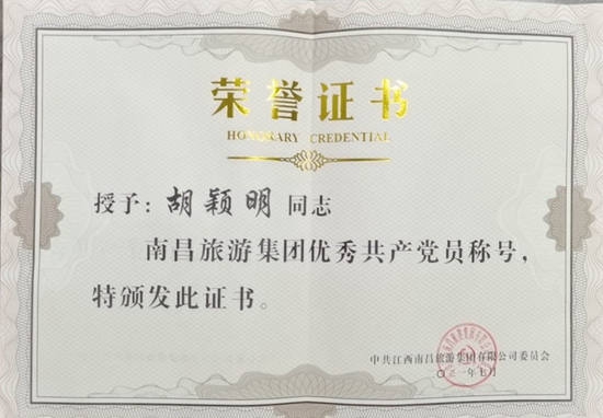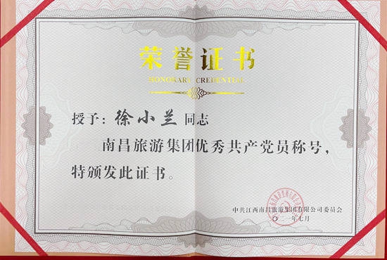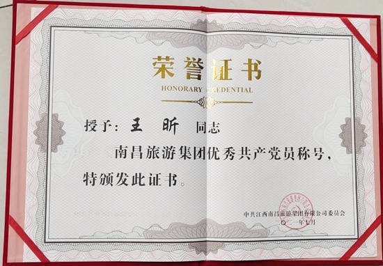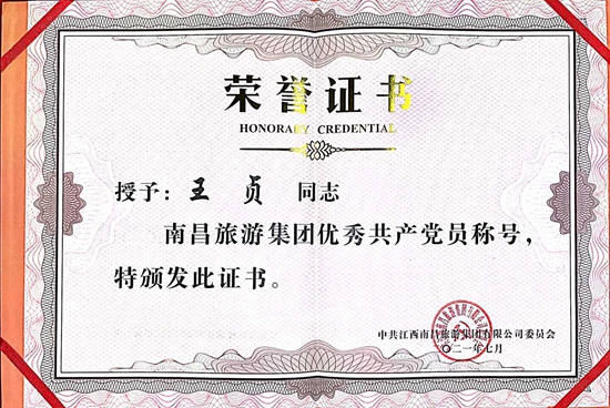 在隆重紀念中國共產黨成立100周年之際,南昌市國資委和南昌旅游集團于近日對一批來自各條工作戰線上的優秀黨員和優秀黨務工作者及先進基層黨組織進行了表彰,獎勵他(她)們在各自的工作崗位上履職盡責創先進、立足崗位爭優秀,在推動企業高質量發展中充分發揮戰斗堡壘和先鋒模范作用。其中,公司陳國明同志榮獲市國資委“優秀共產黨員”稱號,公司黨委被評為南旅集團“先進基層黨組織”,黨員職工胡穎明、徐小蘭、王昕、王貞同志獲南旅集團“優秀共產黨員”稱號。