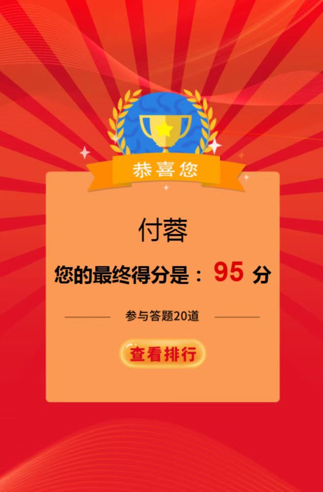 該競賽是以“傳承紅色基因 守牢紀法底線”為主題,通過線上學習,線上答題的形式,以考促學,以考驗效,營造了學習“四史”的濃厚氛圍,重點教育黨員干部深刻認識“兩個確立”的決定性意義,增強“四個意識”、堅定“四個自信”、做到“兩個維護”。同時,把答題活動作為加強黨員干部紀法教育的重要載體進行落實,激發(fā)黨員干部學習紀法知識的積極性、主動性,牢固樹立紀法意識,自覺嚴守紀律規(guī)矩、不逾紀法底線,廉潔從政從業(yè)、規(guī)范行權用權。